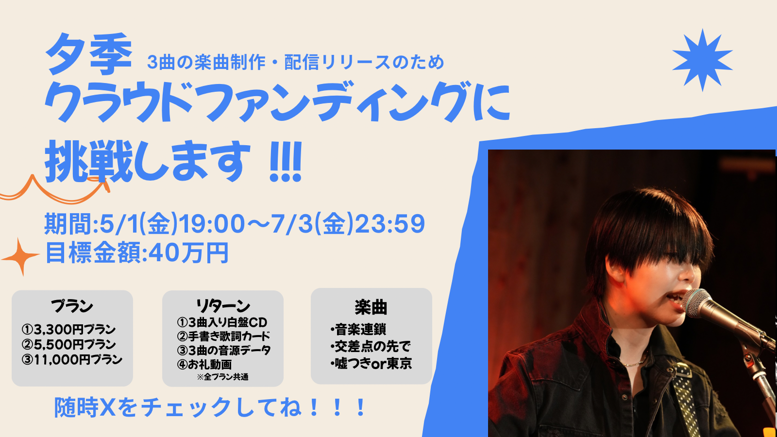 以上3曲をみなさんの力を借りてリリースします。